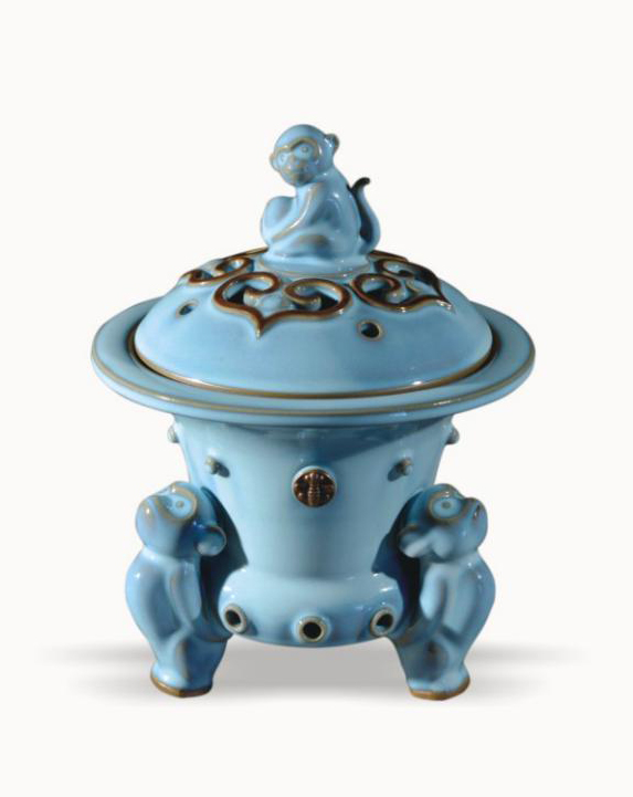 炉体装饰有浮雕蜜蜂,不施釉,精致美观。炉盖中央一